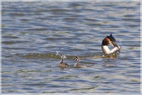 Niin kävi tälle silkkiuikkuperheelle, kun isä sai hauen saaliiksi :) Äiti tipautti näyttävästi poikasetkin tätä komeutta katselemaan.